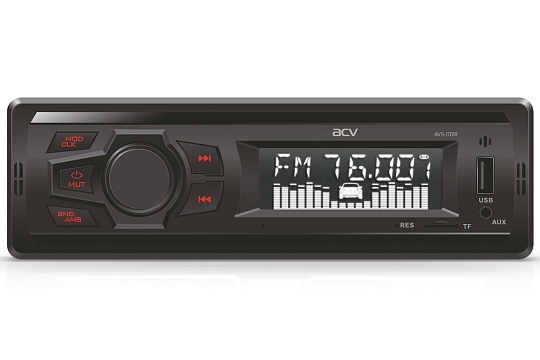 ACV AVS-1701R Магнитола FM/MP3/USB/SD сделает любые поездки намного интереснее. На передней панели находятся интерфейсы для считывания USB и SD носителей, красная подсветка кнопок. Вход AUX позволяет подключать плееры в качестве источников аудиосигнала.