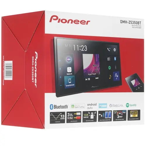 PIONEER DMH-Z5350BT Мультимедийный проигрыватель размера 2-DIN с емкостным сенсорным экраном диагональю 6,8 дюйма обеспечивает простое подключение смартфона по обычному USB-кабелю и поддерживает совместимые приложения, в том числе Apple CarPlay, Android Auto и WebLink, Waze (через Android Auto или Apple CarPlay), Bluetooth, 13-полосный графический эквалайзер, дополнительные функции воспроизведения звука и звучание премиум-класса.