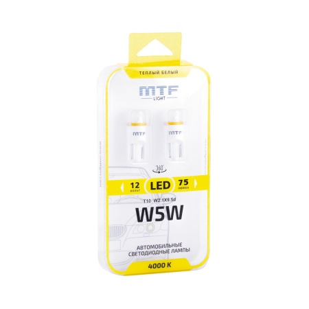 Светодиодная автолампа MTF Light, W5W/T10, 12V, 1W, 90 люмен, 4000К, линза матовая, Корея, 2шт