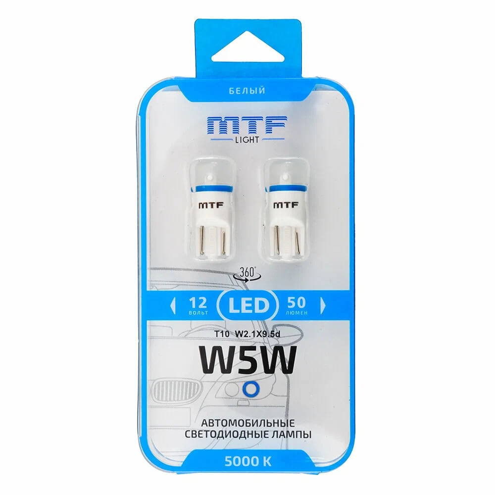 Габаритные светодиодные лампы MTF Т10 (W5W) c матовой равномерно рассеивающей линзой. Долгий срок службы и высокий коэффициент полезного действия обеспечивает качественный светодиод от компании Samsung.