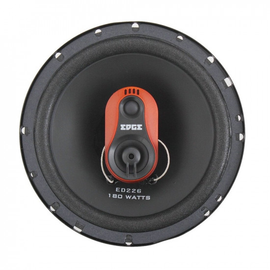 Коаксиальная акустика EDGE ED225-E8 состоит из двух трехполосных круглых динамиков диаметром 16,5 см, ориентированных на установку в двери автомобиля.