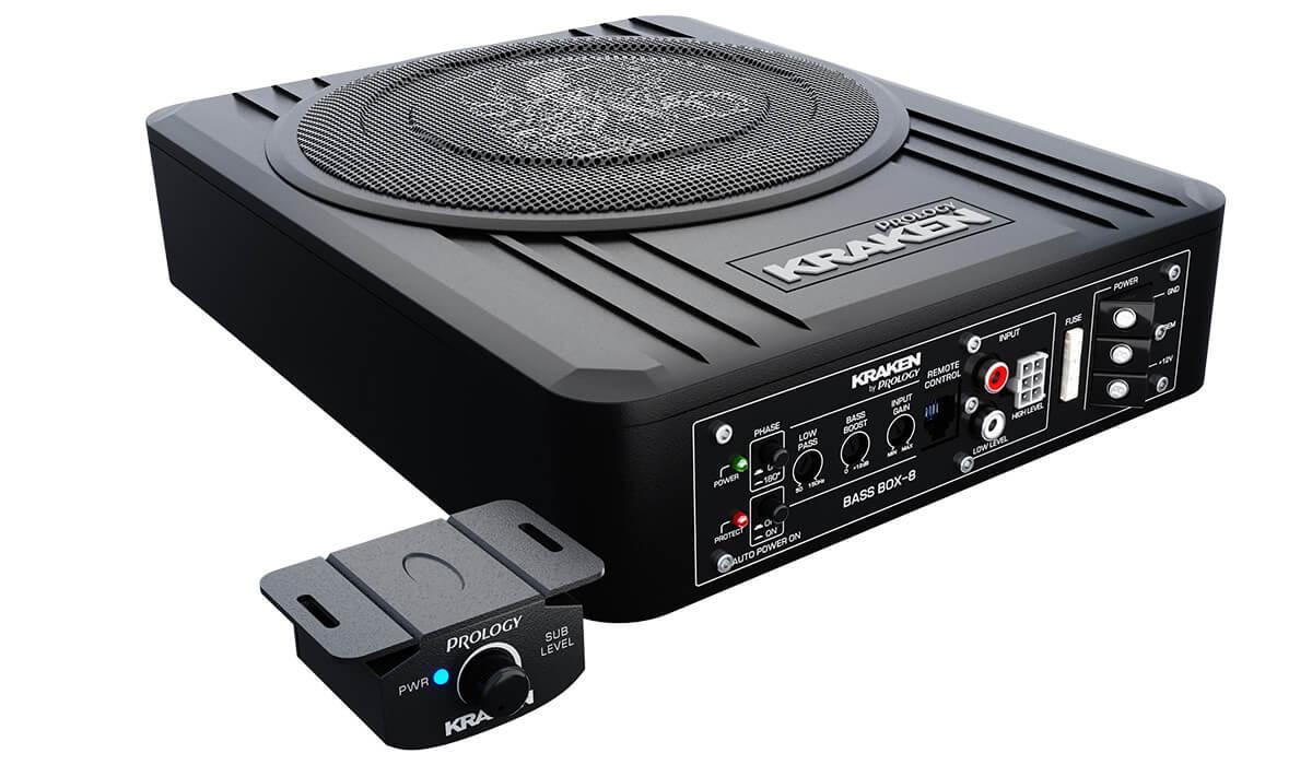 PROLOGY KRAKEN BASS BOX-8 — активный сабвуфер с эргономичным дизайном, позволяющим легко разместить его в любом месте салона автомобиля — например, в багажнике или под сиденьем. Низкопрофильный компактный корпус «закрытый ящик» из алюминиевого сплава имеет высоту всего 80 мм. Благодаря возможности подключения двумя способами — с помощью линейных RCA или высокоуровневого входа, сабвуфер совместим с любыми автомагнитолами, включая штатные головные устройства.
