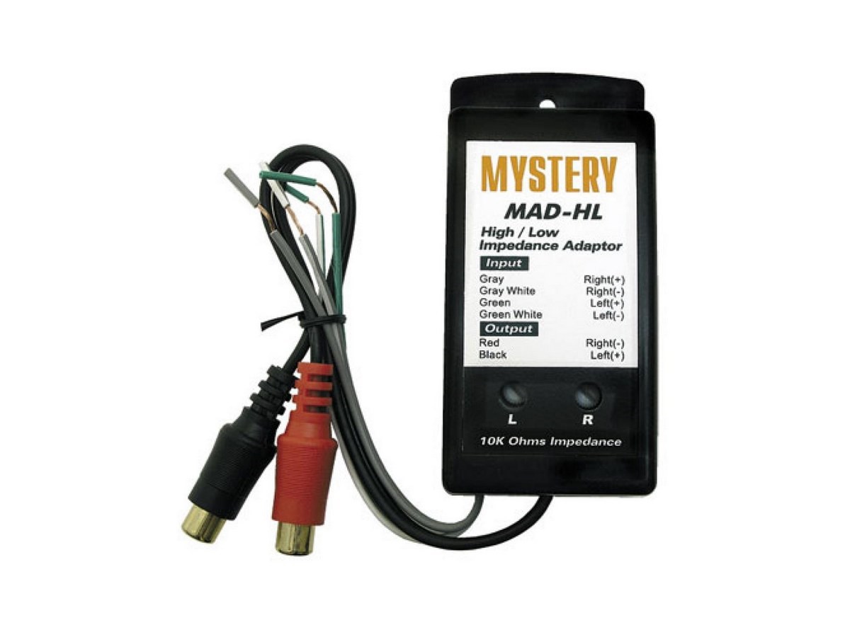 Конвертор уровня адаптер MAD HL предназначен для соединения головных устройств, не имеющих линейных выходов, через акустические выходы к стандартным RCA входам усилителей.